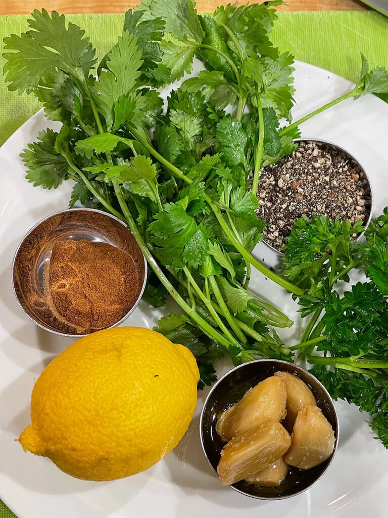 I remove the sachet filled with herbs and peppercorns and other flavoring things in there. Then, I will often puree the rest with a hand blender to make a sauce. It yields an elegant sauce for the braise you’ve taken such care over. That is how it serves — you would always serve it hot, often with some fresh herbs at the end. They’d benefit from that, often with something very bright like lemon zest, lemon juice, or lemon zest parsley, or gremolata (lemon zest, garlic, and parsley). And there is your braise.