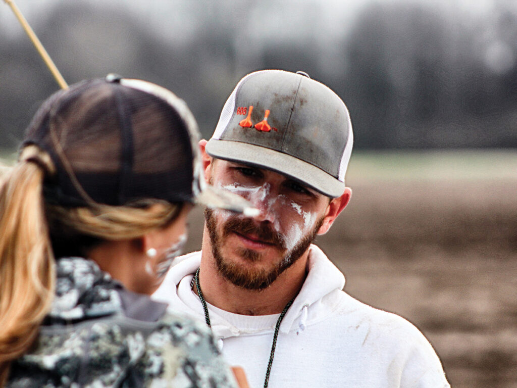 Camaraderie in the blind is one of my favorite aspects of hunting fowl — unlike, say, tree stand hunting for deer, there are plenty of opportunities for humor, story-telling, and ball-busting. On this trip, my friend Bo proved to be the kind of guy who keeps the party going no matter where he is. It started as soon as we pulled into the field; he was racing back and forth to the trailer with gear while wearing neoprene waders. It wasn’t long before physical activity, combined with the insulating properties of his attire, became too much. “I’m burning up in these things!” he yelled, and it wasn’t long before he returned from the truck in a pair of shorts and boots, slinging mud everywhere as he ran around throwing up decoys. At one point, during the flight lull, I looked up to see Bo dancing in the decoys to some old soul music we had playing in the background.