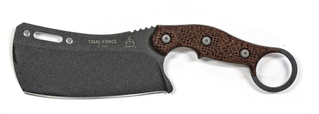 This author is a combatives instructor who studies Indonesian silat and Filipino kali, two arts that extensively use the karambit. There are specific uses for its curved blade and retention ring. Unfortunately, it’s a current industry fad to put a ring on the end of almost any knife type, and the Tidal Force is one such example. Aside from the unnecessary just-for-looks retention ring, this TOPS model features quality materials, stellar craftsmanship, and an excellent sheath. Made in the USA.